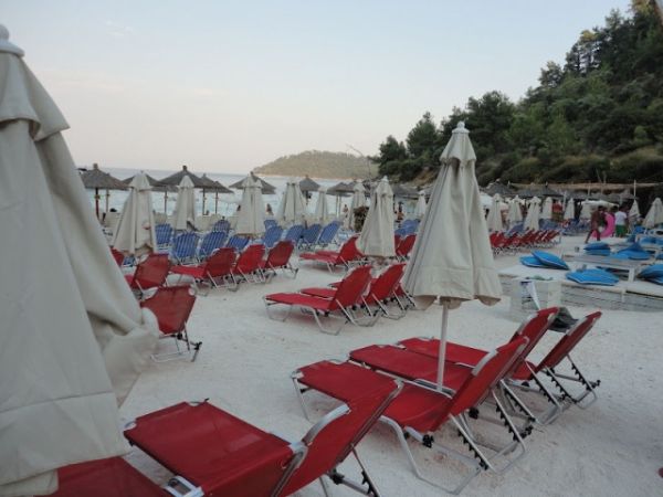 Sajnos, hogy a természeti szépséget kissé megöli az ott dübörgő zene (szó szerint az, a saját hangomat sem hallottam), a rengeteg napágy – szerintem napközben egy tűt sem lehetne ott leejteni. Pedig a természeti szépsége páratlan a helynek, csak túlzottan „civilizált” lett. Nem bántam, hogy ilyen későn jöttünk, egy kicsit nyugisabb volt talán, fiataloknak (vagy inkább bulizni szerető embereknek) kifejezetten ajánlom a helyet, ők nagyon fogják élvezni. Pedig én is szeretem a görög zenét, csak éppen normál hangerőn hallgatva.