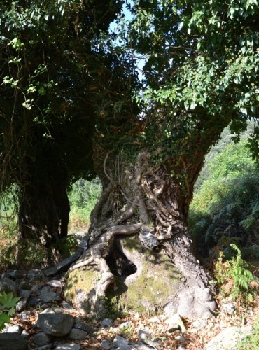 Erősen meresztjük a szemünket, ameddig meglátjuk egy fatáblára kiírva, hol kell letérni. A főútról balra fordulva már csak pár száz métert lehet kocsival menni, mert amikor emelkedni kezd az út, jó görög szokás szerint egy csapda van közbeiktatva. A fél út leszakadva, finom homokkal borítva, úgyhogy még a terepjárók is elássák magukat. Pedig utána simán tovább lehetne menni kocsival is. A nagy melegben úgy vonszolják magukat a turisták, akár a tikkadt vándorok a sivatagban. Az öreg olajfák, melyek között az út vezet, csodálatosak és különleges, egyedi a sziklaoldalban kialakult táj is.