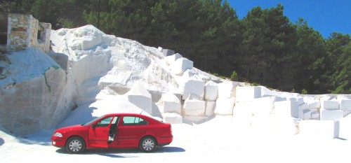 Korán reggel indulunk meglátogatni Thassos leghíresebb nevezetességeit, a márványpartokat. A hozzájuk vezető út, a környező fák, az autónk és hamarosan mi is márványporral lettünk beborítva.