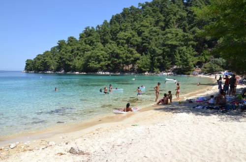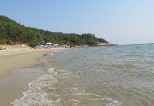 Ide is korán reggel indulunk. Így nyugodtan találunk parkírozó helyet. A part finom homokkal borított, annyira széles, hogy a nyugágyaktól elfoglalt részek között bőven van szabad hely. Árnyék nem sok van, de a finom homok kárpótol mindenért. A víz kristálytiszta és lassan mélyül.