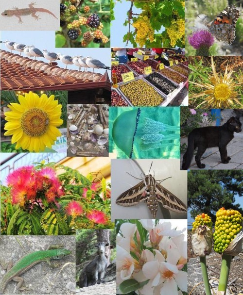 Akik nyitott szemmel járnak a szigeten, és nem csak néznek, hanem látnak is, számos csodás növényt és számos állatkát megfigyelhetnek. Idős falusi bácsi, mikor mondtuk, Görögországba megyünk, legyintett, ott is csak emberek laknak. Most mosolygok. A szállásunk 50 m-es körzetében gránátalmafa, pálma és pisztácia. Színes pillangók repkednek, tőlem nem messze egy kövön minden délelőtt hatalmas zöld gyík napozik. A lámpabúrán hatalmas szender pihen. Esténként pici békák ugrálnak a lábunk körül és a falon fürge apró gekko gyíkok nyeldekelnek. A Kapitány vendéglőből előkerül lányom kicsi barátja, egy fekete macskakölyök. Talál a vendéglőhöz, mert igazi kalózhoz híven, csak egy jó szeme van az istenadtának.