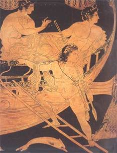 Kalandos útjuk volt hazafelé is, csábították őket a szirének, de Orfeusz a sziréneknél is szebben dalolt, látták Szkülla és Kharübdisz szikláit, de a Néreiszek átsegítették a hajót a veszedelmes hullámokon.